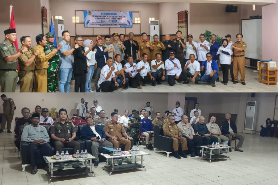 infolintar.com – Beltim – Pengukuhan Pengurus Kelompok Kerja (Pokja) Wartawan Belitung Timur periode 2026–2029 berlangsung di Ruang Rapat SHBN (Satu Hati Bangun Negeri), Kantor Bupati Belitung Timur, Senin (6/4/2026).